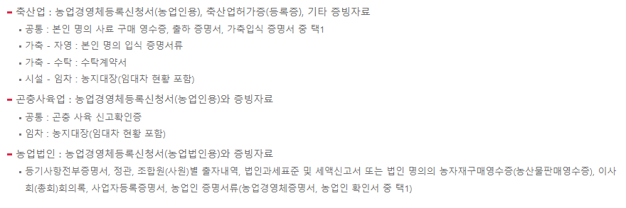 (공통) 농업경영체 등록신청서, 본인 명의 농자재 구매영수증 또는 농산물 판매영수증