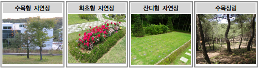 자연장지란 자연장을 할 수 있는 땅으로 자연장이란 화장한 유골을 잔디 및 화초 등의 아래에 묻는 것을 말한다. 평장과 유사한 형태이나 비석에서 차이가 발생하며, 자연장에서는 비석을 표지라고 부르며, 개별표지의 면적을 200㎠로 제한한다.